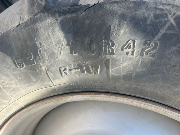 Sellers Comments: 4-Wheel Drive Wheel Tractor - Deluxe Cab with A/C and Heater - Instructional (Buddy) Seat - Standard Radio - Manual Adjustable Outside Mirrors - PowerShift Transmission - 620 / 70R 42 Inch Tires - Firestone Brand Tires - Dual Wheels - Four Rear