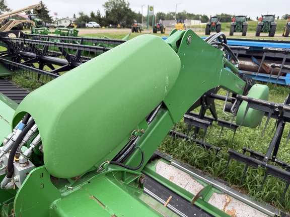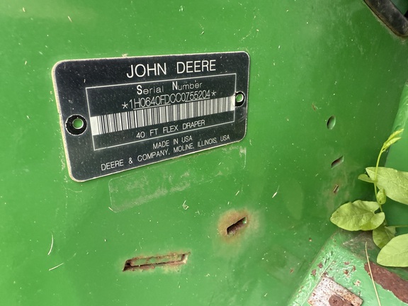 Sellers Comments: 40' CUTTING WIDTH, FLEX DRAPER, STEEL AUGER FINGERS, 600F LOW STONE DAM, JD 600F SICKLE, JD GUARDS, HYD FORE/AFT REEL, DIAL A SPEED REEL, HHS (50/60/70/S SERIES), SINGLE POINT, FINGER REEL, PTO TELESCOPING DRIVE (50/60/70/S SERIES), POLY END DIVIDERS - VI