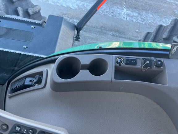 Sellers Comments: 4-Wheel Drive Wheel Tractor - John Deere CommandView II Cab - Premium Cab - Leather Trim - Premium Radio - PowerShift Transmission - 800 / 70R 38 Inch Tires - Factory Hub Dual Wheels - Four Rear Selective Control Valves (SCV) - Standard Hydrauli