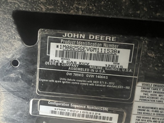 Sellers Comments: 2015 John Deere XUV 825i