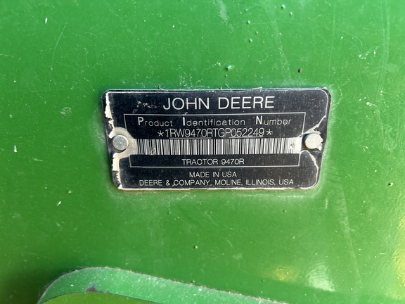 Sellers Comments: 2016 JOHN DEERE 9470R, 470 ENGINE HP, 18F/6R POWERSHIFT TRANSMISSION, DIFFERENTIAL LOCK, 800/70R38 DUAL TIRES, 3600 LB SUITCASE WEIGHTS, 5800 LB REAR AXLE WEIGHTS (2/1400, 6/450, 2/165), 4 SCVS ELECTRONIC, 1 CASE DRAIN, 58 GPM HYDRAULIC PUMP, 1 3/4 1000 P