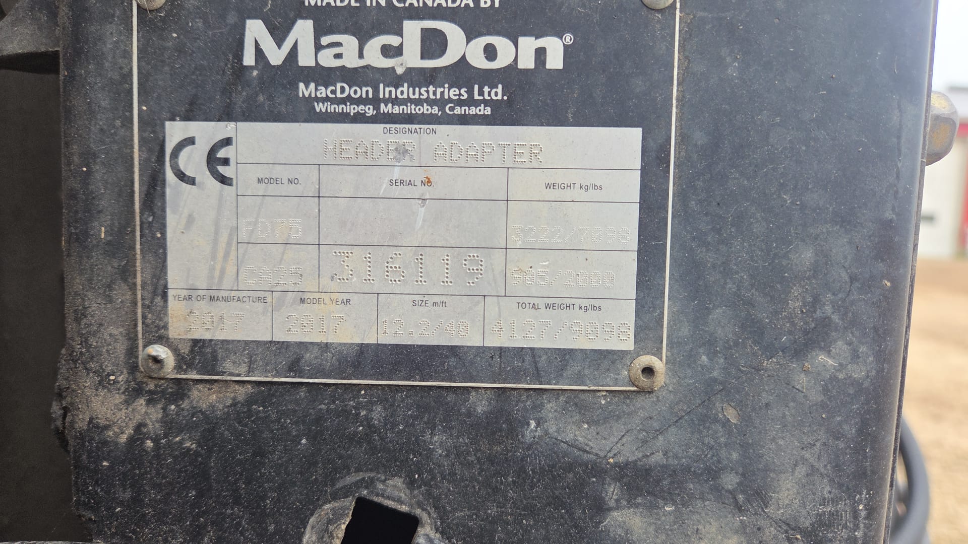- 2017 MACDON FD75-40 HEADER COMBINE