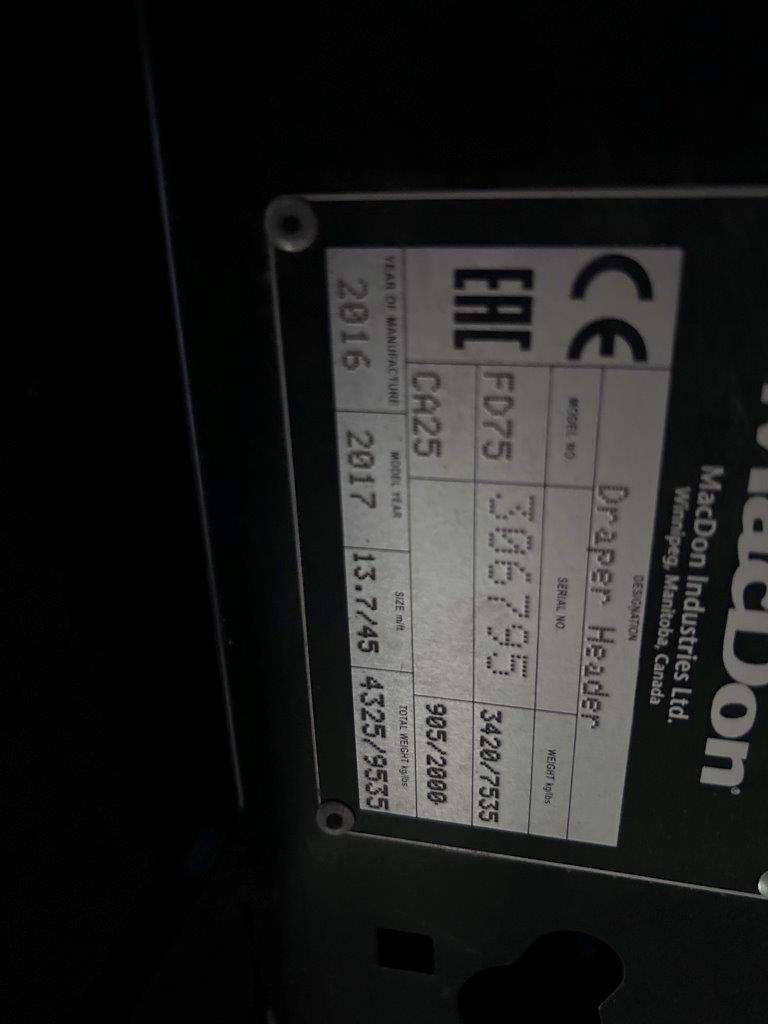 I saw your listing on IronSearch. I would like to learn more about the 2017 MacDon FD75 Header Draper, Iron #5410826, in Scobey, MT.