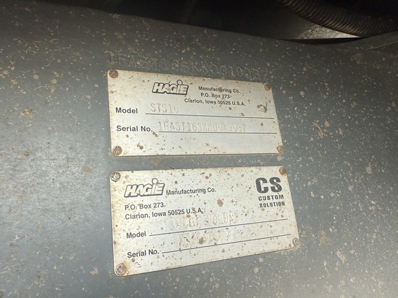 These specifications represent the most common configurations for the Model DescriptionHagie STS16 in 2019. They may not describe Hagie's original specifications nor do they describe the specific STS16 Sprayer/High Clearance listed for sale here.