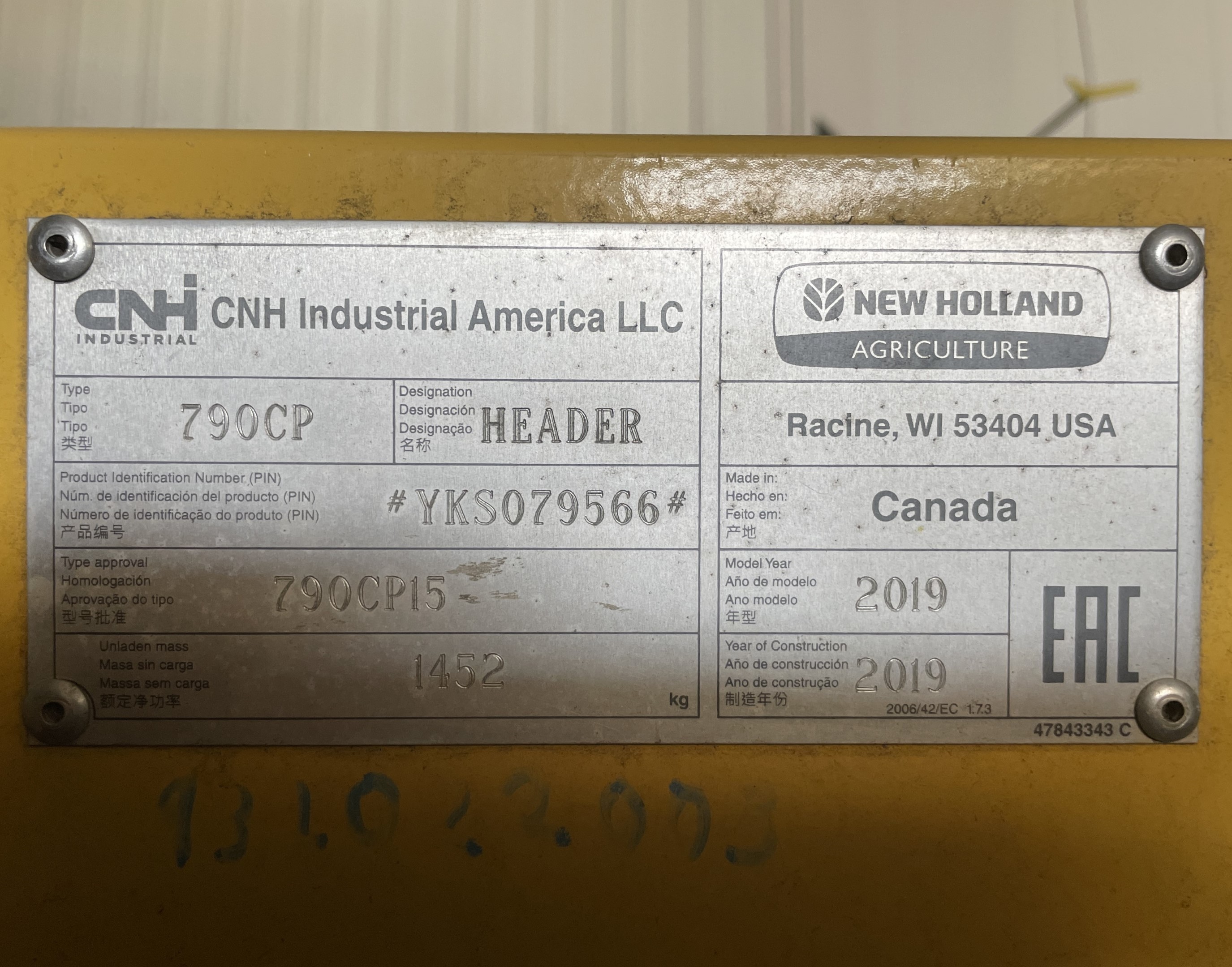 - NH 790CP Pickup Header SN: YKS079566