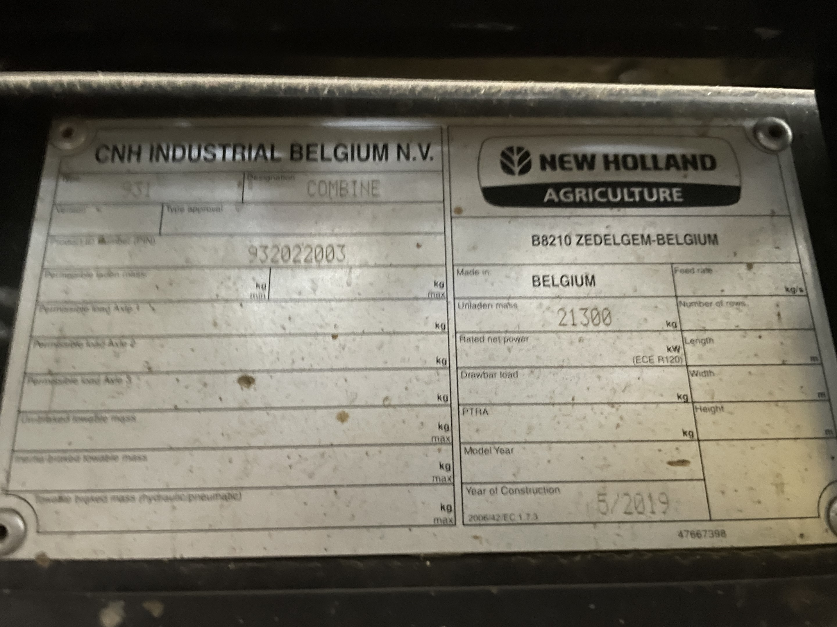 Base model specifications of the 2019 New Holland CR9.90Z Combine are provided for general information only.