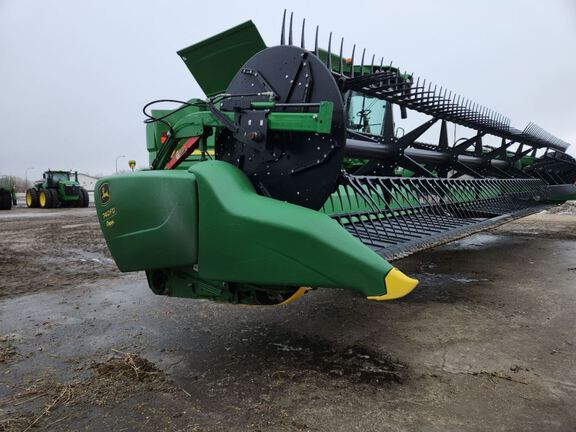 Sellers Comments: Flex Draper - 40 Foot Harvesting Width - Flipover Reel Kit - Header Height Sensing In Rigid Mode - Dual Knife Drive - Stubble Lights - John Deere S Series Combine Hookups
