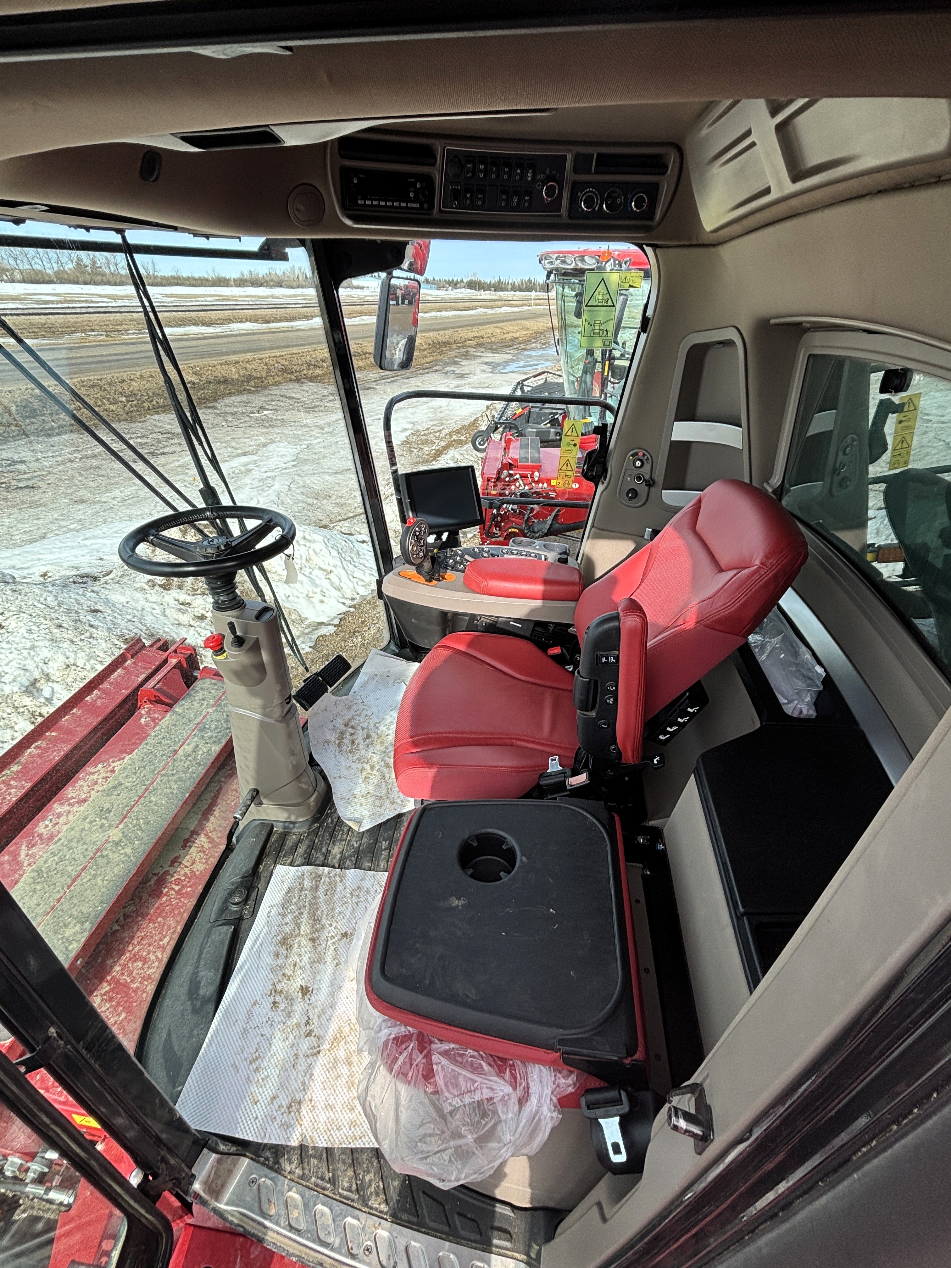 - Leather Seat, Premium / Heated and ventilated red leather high-back operator seat, / with air bolsters, lumbar adjustments, and red leather / instructor seat. / Positive Response air suspension.