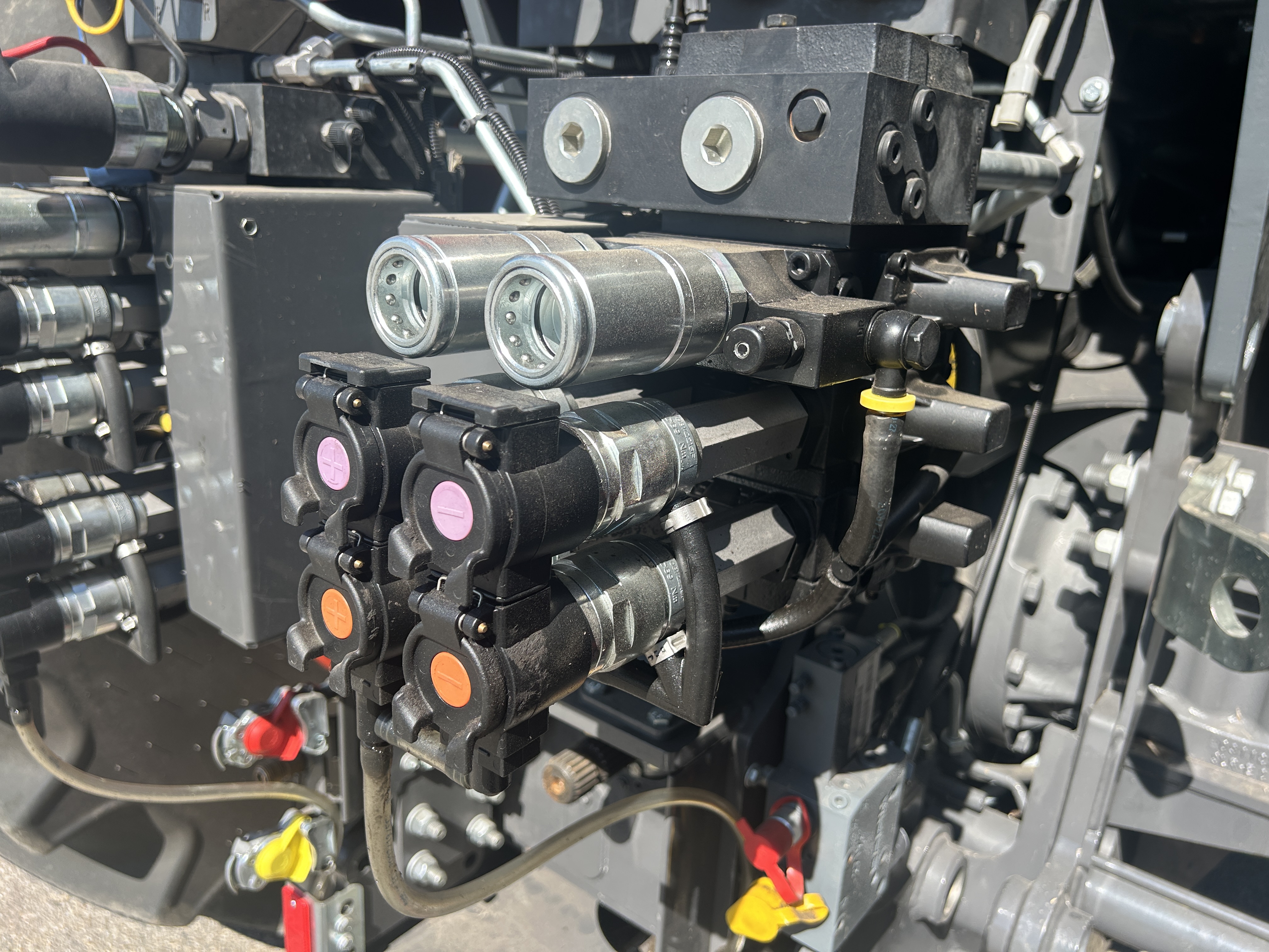 - 8 auxiliary spool valves (3 pumps) vert. + quick couplings, rear