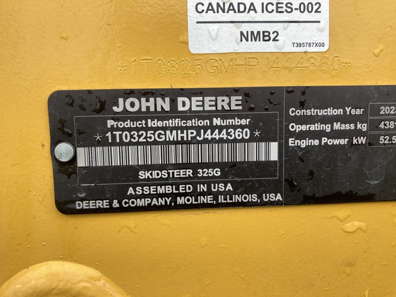 These specifications represent the most common configurations for the Model DescriptionJohn Deere 325G in 2023. They may not describe John Deere's original specifications nor do they describe the specific 325G Compact Track Loader listed for sale here.