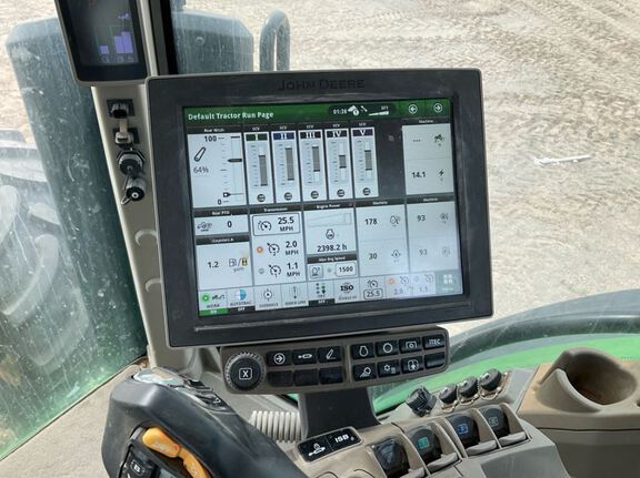 Sellers Comments: Large Frame Row Crop Wheel Tractor - Signature Edition - Cab Suspension - Air Suspension Seat - Instructional (Buddy) Seat - Leather Trim - Refrigerator - CommandARM Display - CommandPRO Multifunction, Reconfigurable Joystick - Foot Operated Spee