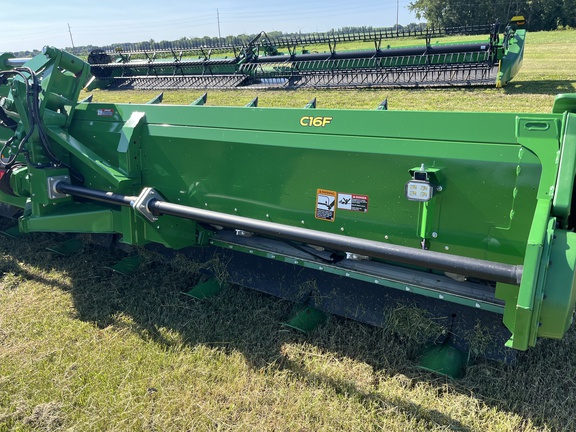 Sellers Comments: 2023 JOHN DEERE C16F 16R30, FOLDING, STALKMASTER, INTERMESHING KNIFE ROLLS, HYD DECK PLATES, PTO TELESCOPING DRIVE (X SERIES), SINGLE POINT, CONTOUR MASTER SENSORS, OUTER GATHERING EXTENSIONS, ACTIVE END FENDERS, AUTOTRAC ROW SENSE SENSORS, POLY ROW DIVID