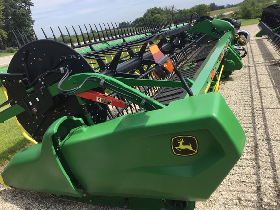 Sellers Comments: Used 2023 John Deere RD45F Hydra Flex Draper, 45' Width, Flip Over Reel, Center Flow Divider, S700 Series Hookup, Crary Wind Bar System.