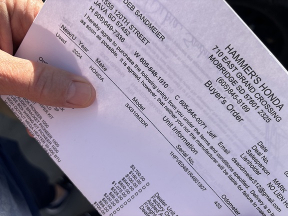 Sellers Comments: 2024 HONDA PIONEER 1000 / 1HFVE04B1R4801907 / 375603, 50 MPH MAXIMUM FORWARD SPEED, PREMIUM CAB, GLASS FRONT WINDSHIELD, REAR WINDOW, OPENING REAR WINDOW, MANUAL CRANK WINDOWS, TILT STEERING WHEEL, RADIO, REAR VIEW MIRROR, SIDE MIRRORS, MECHANICAL SHIFT T