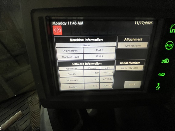 Sellers Comments: 2014 HAGIE STS12, LIQUID MACHINE, STEEL BOOM, 120' BOOM, 15" NOZZLE SPACING, AUTOMATIC SECTION SHUTOFFS WITH SECTION CONTROL, NORAC BOOM LEVELING SYSTEM (5 SENSORS), NO BOOM AIR PURGE, END CAP ASPIRATORS, NO FOAM MARKERS, FENCE ROW NOZZLES, 1200 GALLON TA