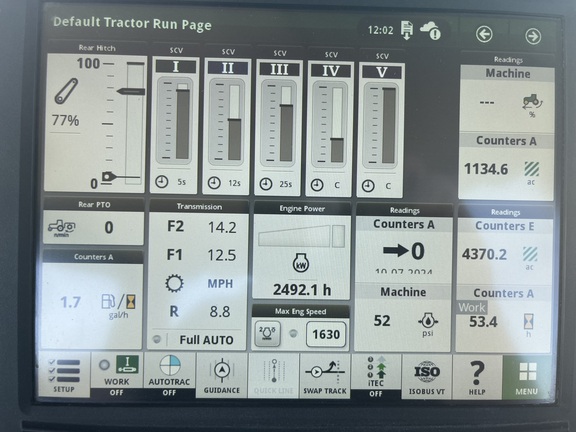 Sellers Comments: 2020 JOHN DEERE 8345RT, 345 ENGINE HP, 286 PTO HP, IVT TRANSMISSION 25 MPH, RIGHT HAND REVERSER (INTEGRATED IN GEAR SHIFTER), 16 INCH TRACKS, 144 INCH TRACK SPACING, 5 SCVs (MECHANICAL), 1 AUXILIARY HYDRAULIC CONNECTION 1/2 INCH, 1 CASE DRAIN, 1 3/4 1000