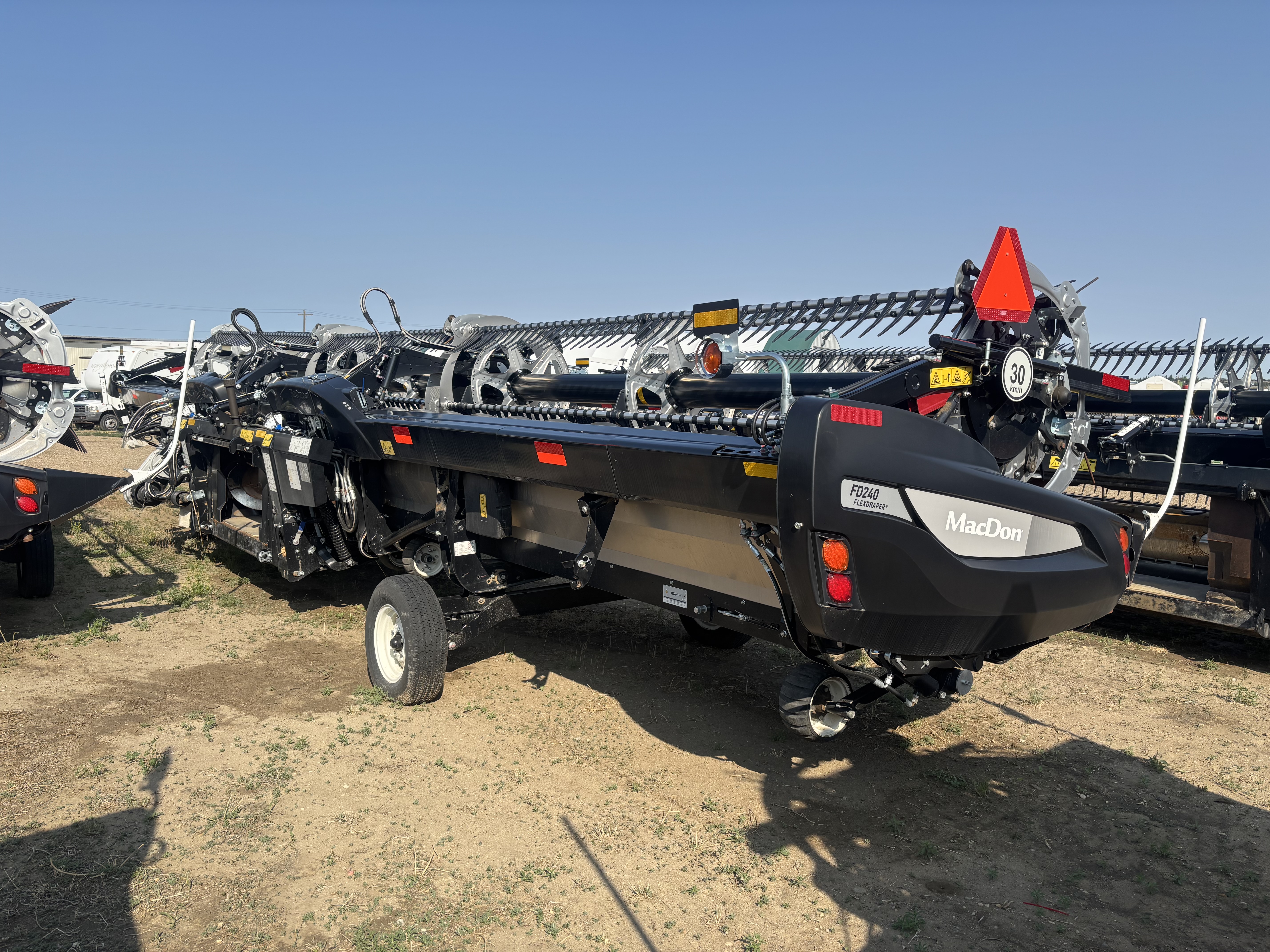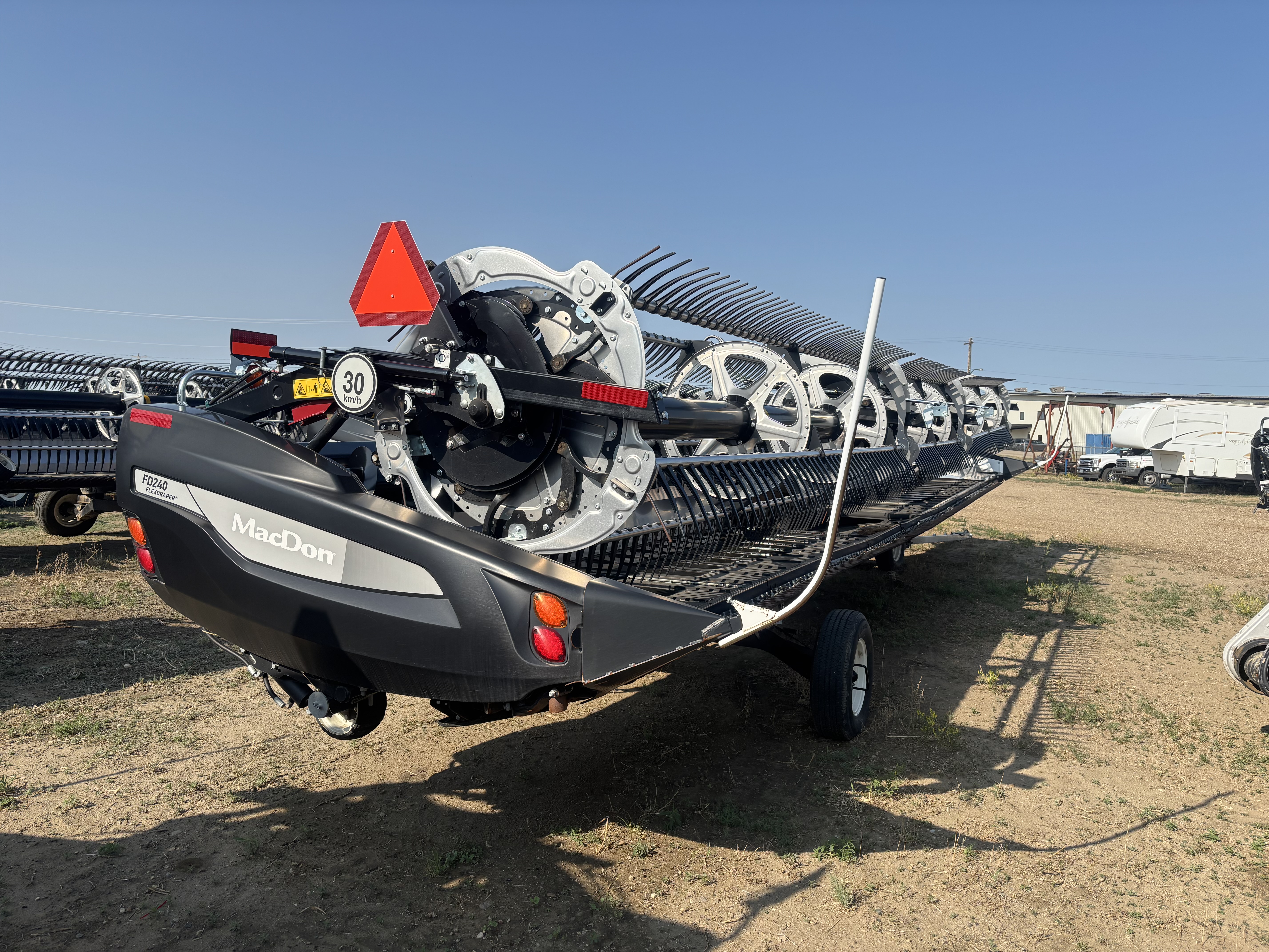 - The 2024 MacDon FD240 FlexDraper® header, in excellent condition with one season of use, is a top-tier harvesting solution. This 40-foot header features advanced Flex-Float Technology®, a new-style flex design, and a three-piece reel for superior crop engagement. Optional ContourMax™ wheels ensure precise cutting from 1 to 18 inches, while the dual knife drive and upper cross auger maximize productivity. With a single-point hookup.