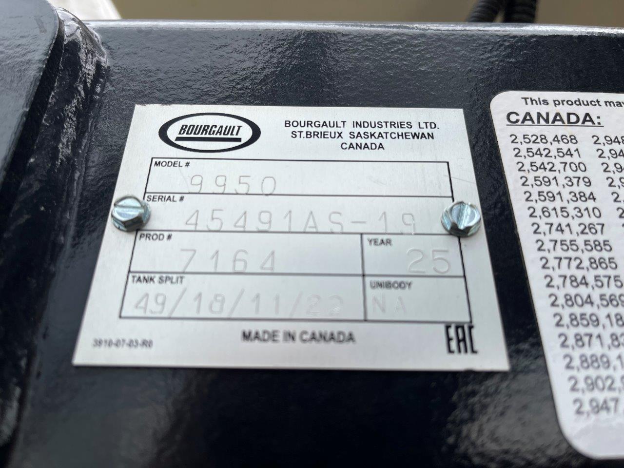 - MY2025 Bourgault 9950 TBH Tank s/n 45491AS-19